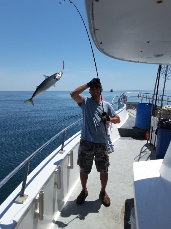 It was beautiful in the ocean today and a SUPER day of fishing. We had BLUES, MACKEREL, BONITO, LING and CODFISH. Whatever you wanted to fish for, you caught.