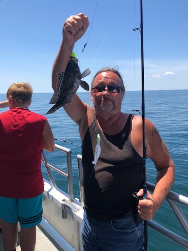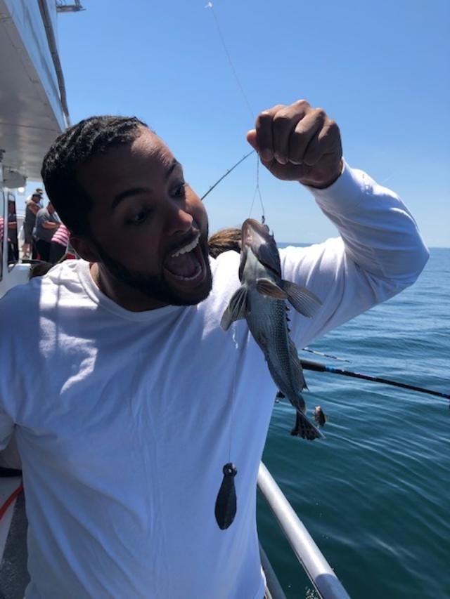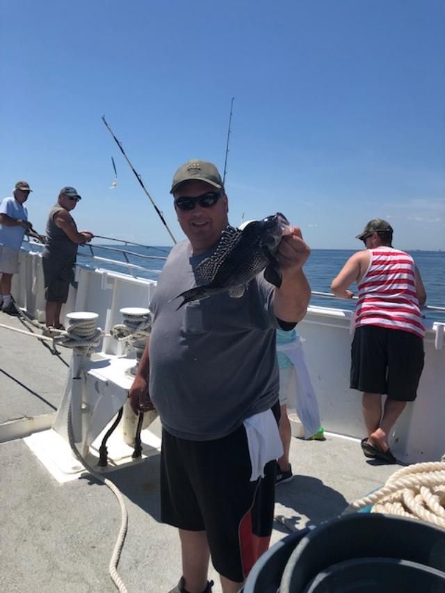 This morning, we looked offshore for the blues. We tried anchoring up and chumming and ended up doing good with the ling and sea bass with a couple bonito and few mackerel. Overall it was a great day of angling! Our pool winner was Ray Berlin from Monroe, NJ.