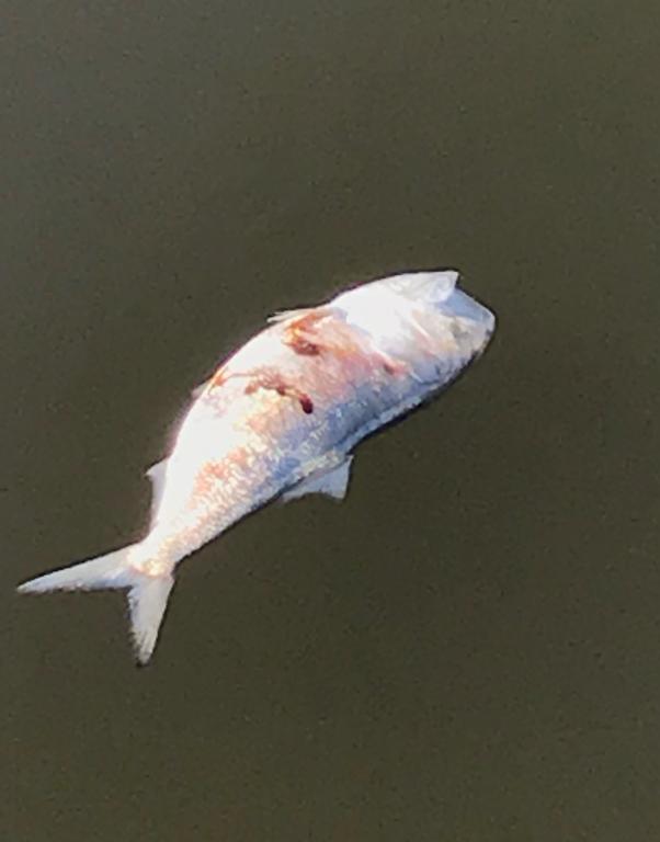Drop offs from 8-20 fow had plenty of shorts on 1/2 oz bucks and 2” swimming mullets. Same MO as every other day. Good bite. Smallies galore. 4” snaps busting bait all over the sand bars. How in the hell yall who fish back here deal with the the salad is beyond me!!! And last...::.ran into dead bunks around coming around Earle then again later in the evening. All had road rash.