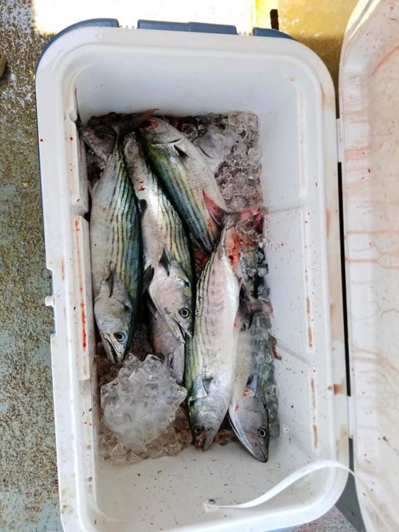 It is much cooler at sea, and there are two areas holding Bonito and blue fish.