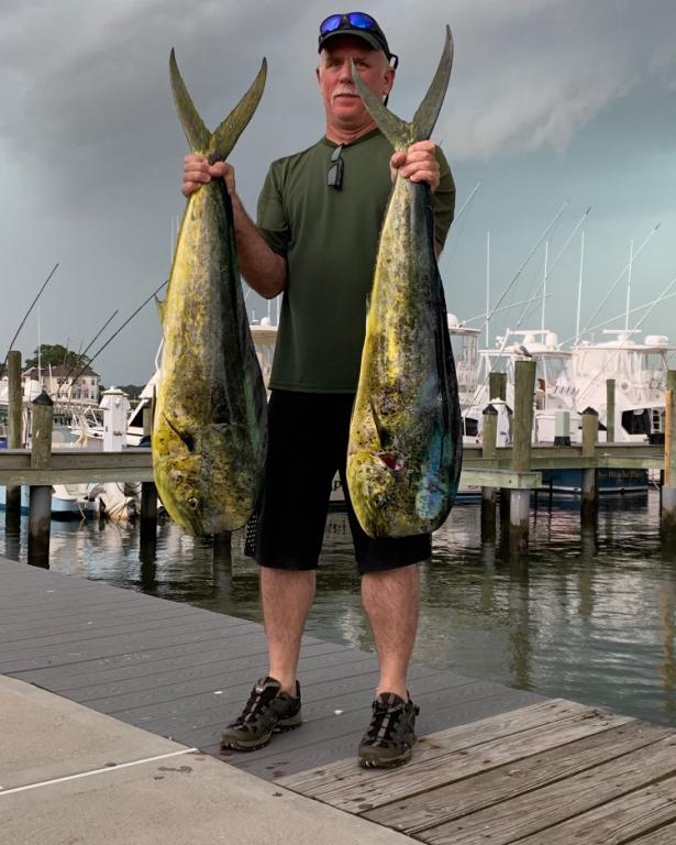 Adrian. Plan was for tuna hit a couple of spots but no luv, Gave the charter the choice to run way up north or crush mahi On the pots. They choose the latter proceeded to crush the Mahis Landing over 30 with half a dozen slobs between 15-18lbs.