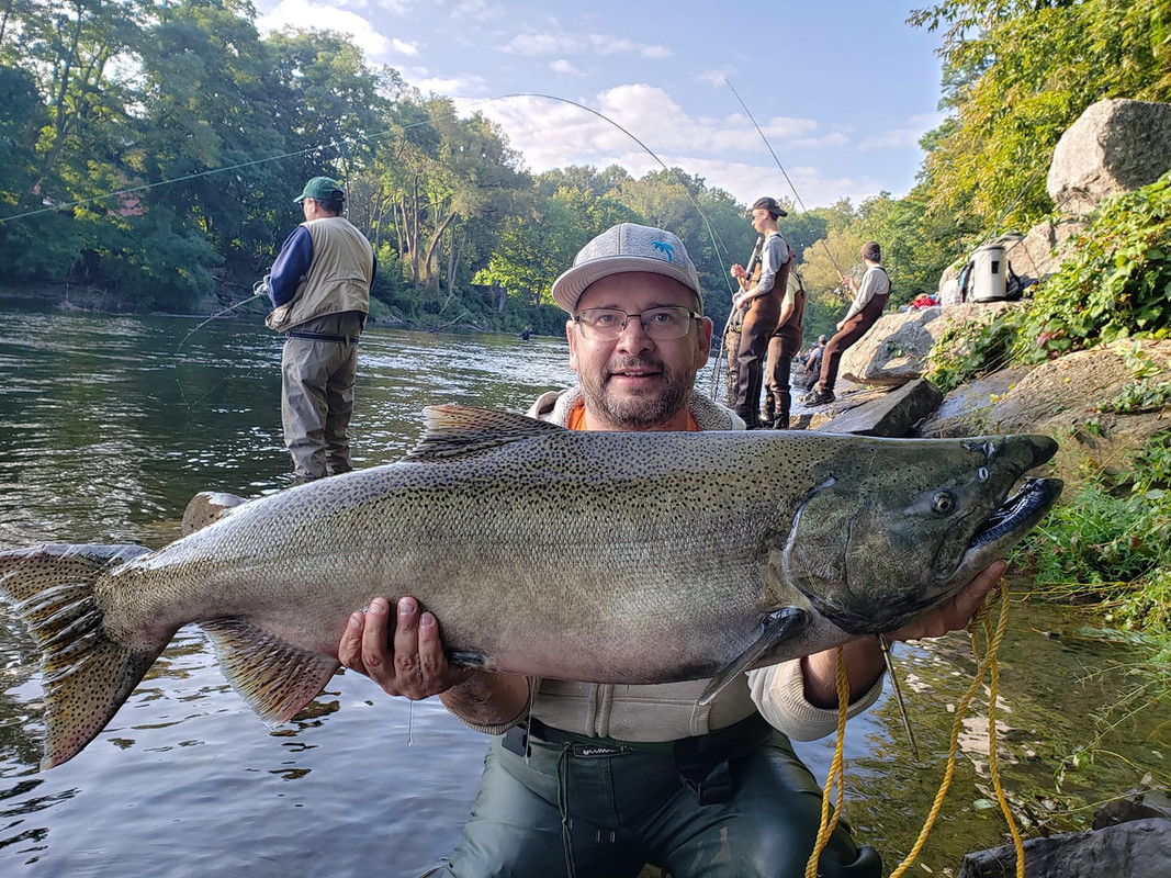 That time is upon us my friends and only place where you can find us is at Salmon River. Instead of reading reports I decided to make a report. And so we go. Friday 13th - Got to the river at 2am and went to investigate the fish movement. While hearing some movement here and there it was decided to start staircase. Got there at 530am to find all the sweet spots already taken and water lever way to low for my liking. Neverless stuck it out till 12pm with zero hook ups. Only saw 5 other ppl hook up and out of them only 1 fish was landed. After an hour break went out to the zoo at town hall. More fish movement was there with lots of ppl hooking up. Went 1 for 1 and my buddy went 0 for 6. Saturday 14th - Started at town hole and was extremely disappointed. Went 0 for 10 with my buddy going 0 for 20. Could not hold fish with 12 and 15 pound leaders at all. Too fresh and way too strong. Getting tired of loosing fish decided to move up past trestle pool. Within an hour my buddy hooked into one and that's the only fish we seen there in afternoon. Got back to town hole at 5:30pm and by 7:30 both me and my buddy limited out. Big push of salmon went through and it was just constant hook ups. No more leader breaking since switching to 20lbs. I know its way up there, but had to do what we had to do. Spend night cleaning and vacuum sealing the fish. I know not for everyone taste but hey meat was red and not white or black which we will see soon enough. Sunday 15th - Back at town hole at 5:30am and limited out by 11am with my friend. Fish below took an hour to bring in with 3 other ppl to both sides of me fighting fish as well. ![]() Overall if you want fresher salmon time to go is now. Great weather, great time. Andre |