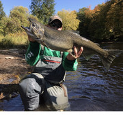 Three weekends in a row up there for me . With the lakes back home in nj still haven’t turned over yet I decided to head back up state again. Me duck or bleed and my buddy from work back for revenge looking to land his first salmon. Fished sat and Sunday hard, there’s still a ton of fish in the lower fly and altmar but these things are black and in pretty rough shape. Stuck it out and caught some fish there Saturday.... Sunday I was in search mode took a little ride where me and Eddie had em good last year around the same time got to the spot and no one in sight and some fresh fish in the hole. Around 12 all hell broke loose and a pod of 30-40 fish came flying up through the rapids and slid into the pool. My buddy mike had no problem landing his first one ever and n the fly rod and is now hooked on fishing upstate. Monday I had off and snuck out for a small session on the south branch and stuck one small bow and saw a lot of fish swimming around chasing each other. Water is super low WE NEED RAIN!