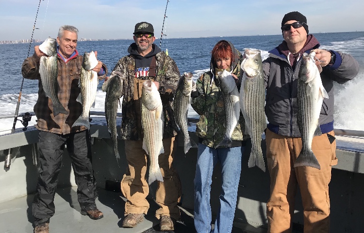 Thursday aboard the Down Deep Bull, we ran another 6am Striped Bass trip with a great bunch of guys and gal. The last few Striper trips have been excellent with diamond jigs and shads, many nice keepers coming aboard with bonus fish and shorts keep everyone busy, making for smiling faces. Don’t miss out this RED HOT fishing. Thanks everyone for sailing with us and all others who continue to book all their trips going forward at a rapid pace. Get your Blackfish dates on the books now. Don’t miss the next open boat trips and fish in comfort like a gentleman. Check our calendar in the open boat section, pick a day, get the crew, book now.