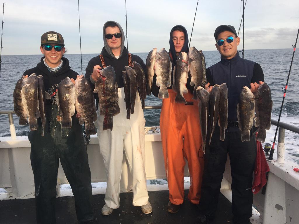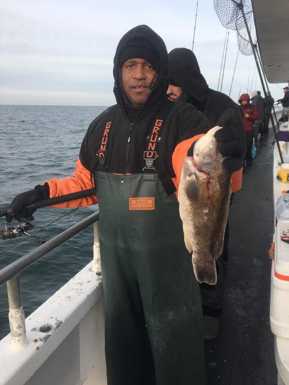 Flat calm today,,very nice day ocean wise…Every spot we stopped today we picked at some fish…Never good,,never bad..The fish were there but very picky…Some guys did have the touch and banged away at keepers and shorts…And they ended up with limits and or 4 keepers…Some had the normal 1,2 or 3…Some had the skunk…..or just shorts….So after alot of work and time we put together a catch….check out some pics….The guys fishing light jigs today did best and had the action all day…The regular rigs worked but longer lighter leader was a big plus…..Tomorrow we are fishing,,,and Monday,,,,Christmas Eve I plan on fishing to..Keep you posted here as to what times on Christmas Eve….See ya tomorrow!!