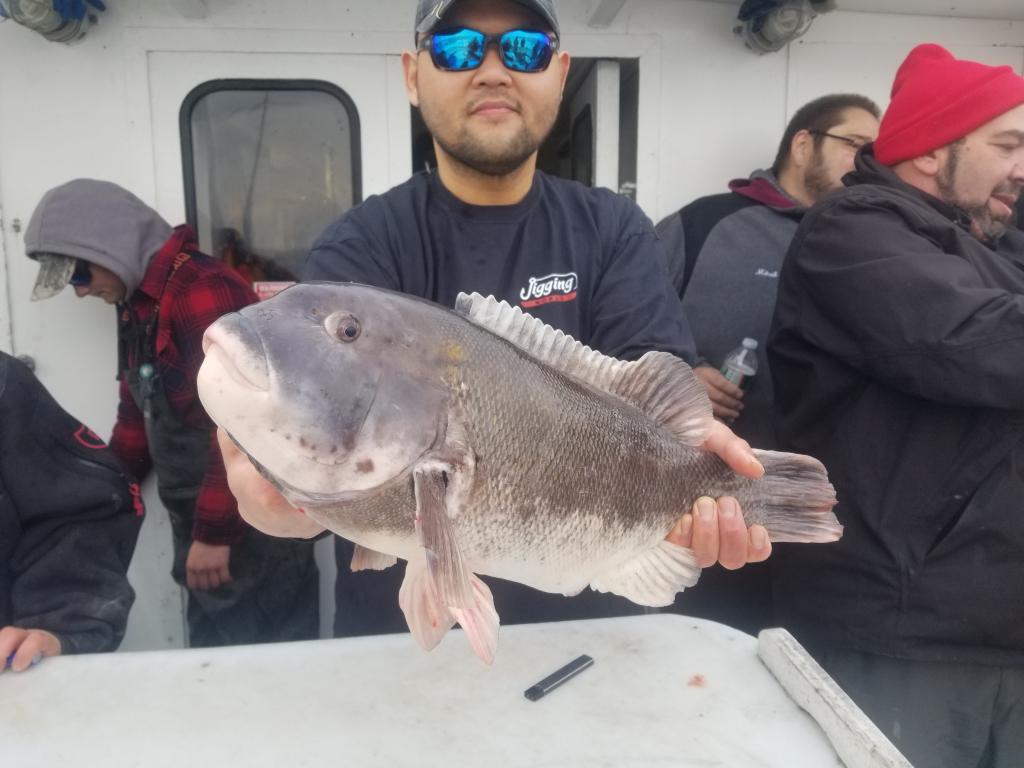 Still fishing everyday the winds let us get offshore..Wednesday we had the blackfish chewing a little with a few guys catching a limit and pool fish up around 8lbs...numerous shorts,,,also some codfish and ling showing up in the mix as well...We have had some real quality fish come to the next the past month as well including our new seasonal pool fish up at around 12 and a half pounds...Worth over 5k at the moment until the season closes at the end of Feb...If I am lazy and don't report here you can see my blog everyday on our website..Or give me a call or text to see if we are sailing any given day...Next day out is Saturday,,gonna pass on tomorrow..See ya this weekend..