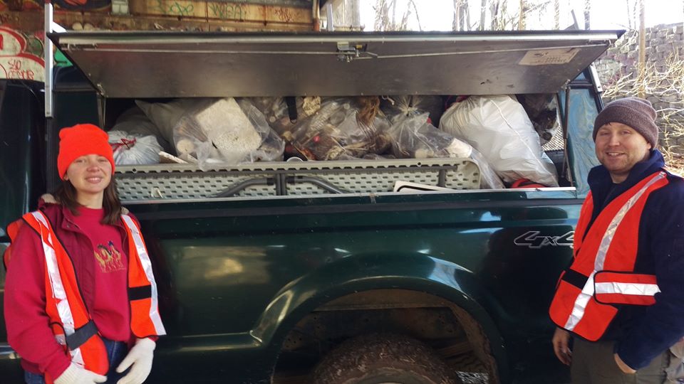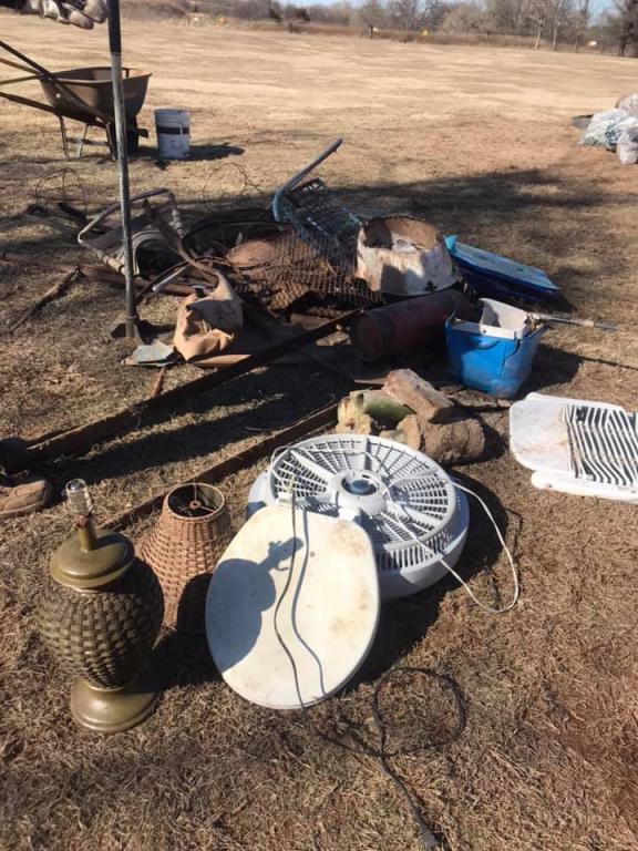 17 tires (with 1 big tractor tire), a bike, a mechanical push mower, some kind of washer or mixer, a wheelbarrow, a folding table, a bunch of plastic and metal chairs, a fan, a toilet seat, a lamp, a bed frame, lots of buckets and pots, pipes, a tamper, lumber, random metal, and about 50 bags of recycling and trash. 6 pickup truck loads total! A great job by all! |