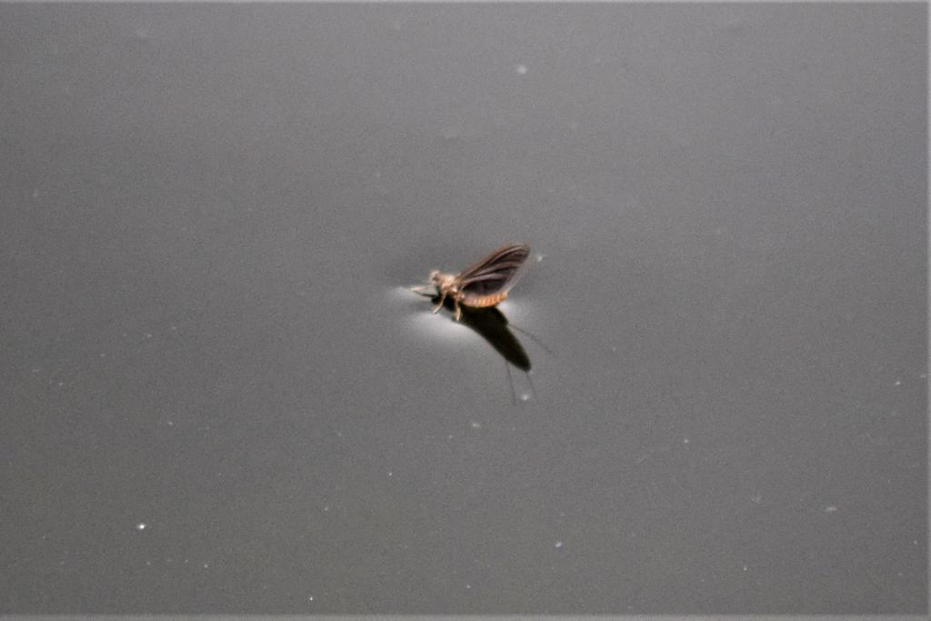 This Saturday and Sunday, I saw few Little stoneflies: very little. It was mostly grannom caddis. In addition, Hendrickson spinners and duns were floating by unscathed by hungry trouts. |