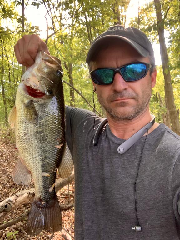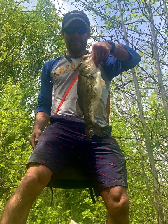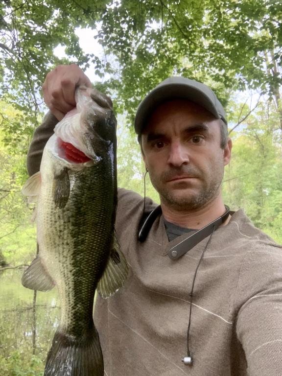 In years past pre-spawn has usually produced my biggest largemouths of the year however 2020 I couldn’t seem to catch anything even picture-worthy. Then starting Friday morning, it’s like the fishing gods flipped a switch. Largemouth are now on the beds, at least where I have been fishing, but while I usually don’t have much luck sight fishing bass on their beds, Friday morning I saw a large dark shadow passing over a light colored area on the pond bottom (I.e. a bed) so I cast past and did a slow and steady retrieve over the bed. Bam, fish on and a nice 4 lber landed. I was feeling pretty good so cut out of work early Friday and within a few casts at a different spot cast at another bed even though I didn’t see anything guarding it and was rewarded with a fish even bigger than the one that morning, prob. About 4.5-4.75 lbs. I felt like I was back in the game. Capped things off the with a nice 3.5 lber out of a different heavily fished Union county spot. Not as big as those from day before but from a much smaller pond. All in all a productive couple days fishing. All fish caught in Union County. The first from a trout stocked county park pond and the other two from undisclosed bodies of water, one very small, the other as large as they come in my home county. Two largest bass caught on black/blue jig with zoom chunk trailer and smaller fish caught on Texas rigged senko on weighted hook.
