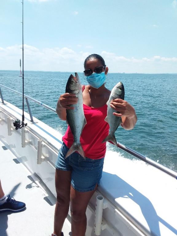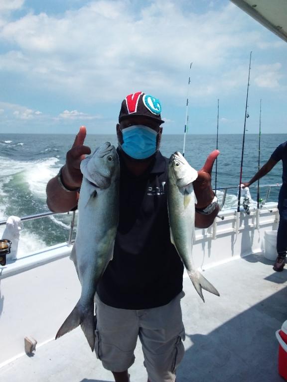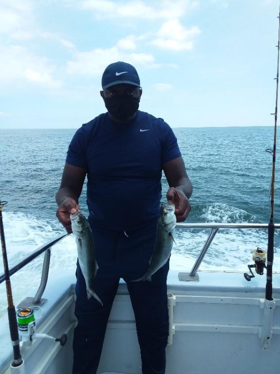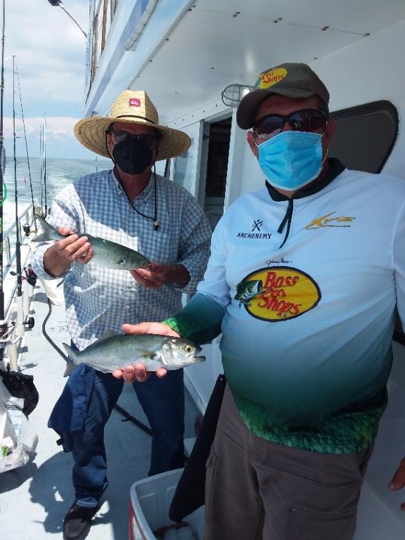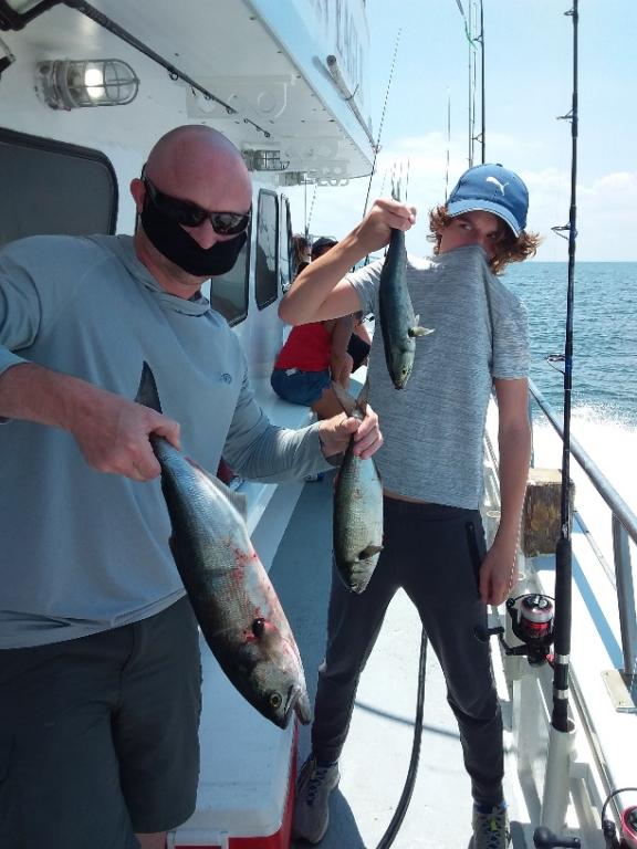 We went inshore for the larger size BLUES today and we did catch some but they were hard to hook. We hooked twice as many as we got in the boat. We then went offshore and we had some good action pretty quick but it didn’t last long enough. We did see a lot of fish out there but they didn’t really want to bite. We also caught some nice big fat BONITO.