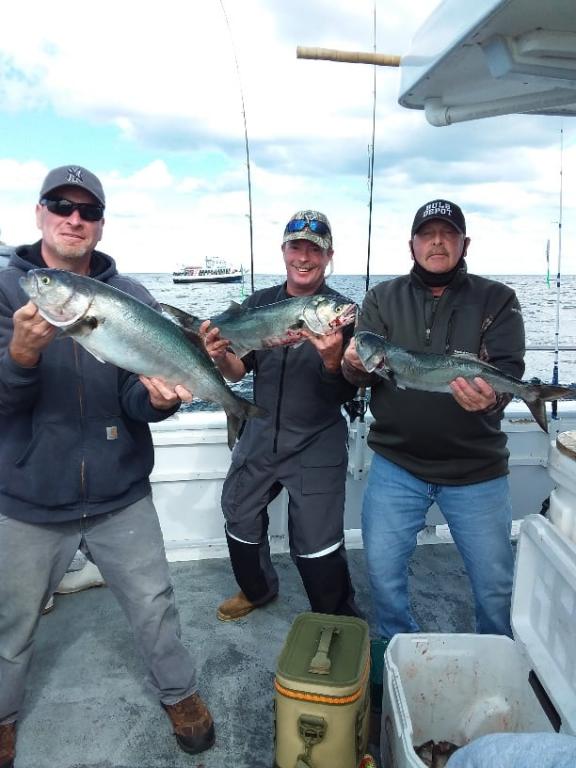 LAST NIGHT'S BLUEFISHING trip was VERY VERY GOOD with lots of fish in the 3 to 8 lb. range on jigs and bait.