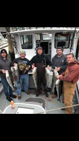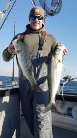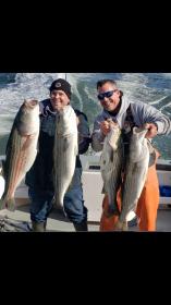 Saturday morning we trolled up some slot fish and a few keepers then switched to live lining bunker and limited out the boat with both slot fish and keepers. Returned a few overs back to the ocean. Sunday we found the birds and all the bass you wanted. After the winds picked up we headed back to the barn with 8 nice keeper bass and 1 slot fish. We also released several trophies to live another day. Great weekend for striper fishing. Chec the open boat page for next available dates. Pictures to follow.