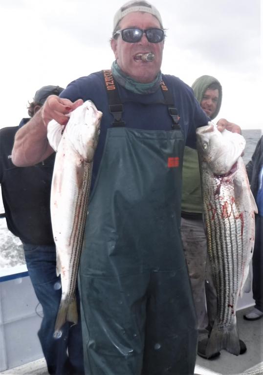 Several area's of fish all day long...Big bass including several over the 38 inch mark up to 45 inches. Young fisherman and first timer on a Party boat, Noah Bogoski landed his first beautiful Striped bass at 44 inches, 35 pounds!! Awesome job kiddo, welcome to the addiction!!