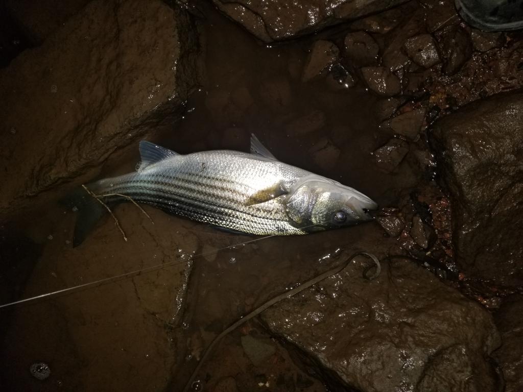 About 30 min later got smoked by a 22" striper on a 4" soft plastic. Fish was really chubby. Called it at 130 am on 12/4. Was my first night adventure in a long time. Felt good, especially in december... been doing a lot of toggin and flounder fishing with quality results from shore. This was a nice lil change of pace.