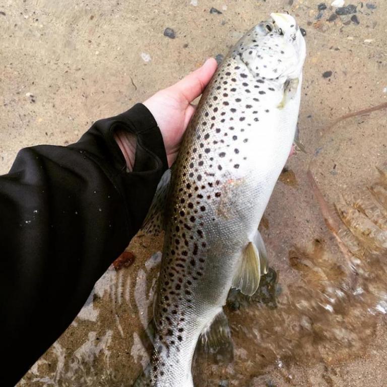Here is a photo of a Sea Run Brown Trout caught off Cape Cod, notice the color and spots. |