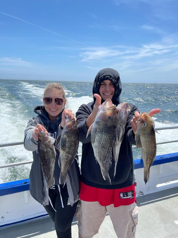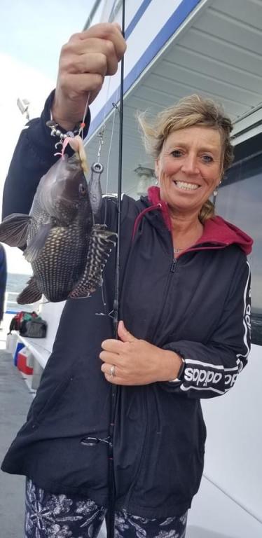 Hey gang, the 1st and 2 sets of the day we were on the float and were picking away, then we got this strong wind with the out going tide. Definitely had to put 2 anchors out on the last 2 wrecks of the day, not great fishing but not bad either, high hook was Lenny from Staten Island with 8 nice knuckleheads. Everyone had 5 and low hook was 3. Adam and Danielle from Denville, NJ had today's pool fish. We're fishing tomorrow so we will see you at the dock 7:30am. Thanks. Captain Scott.