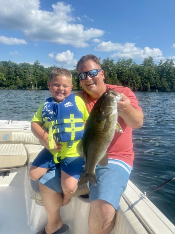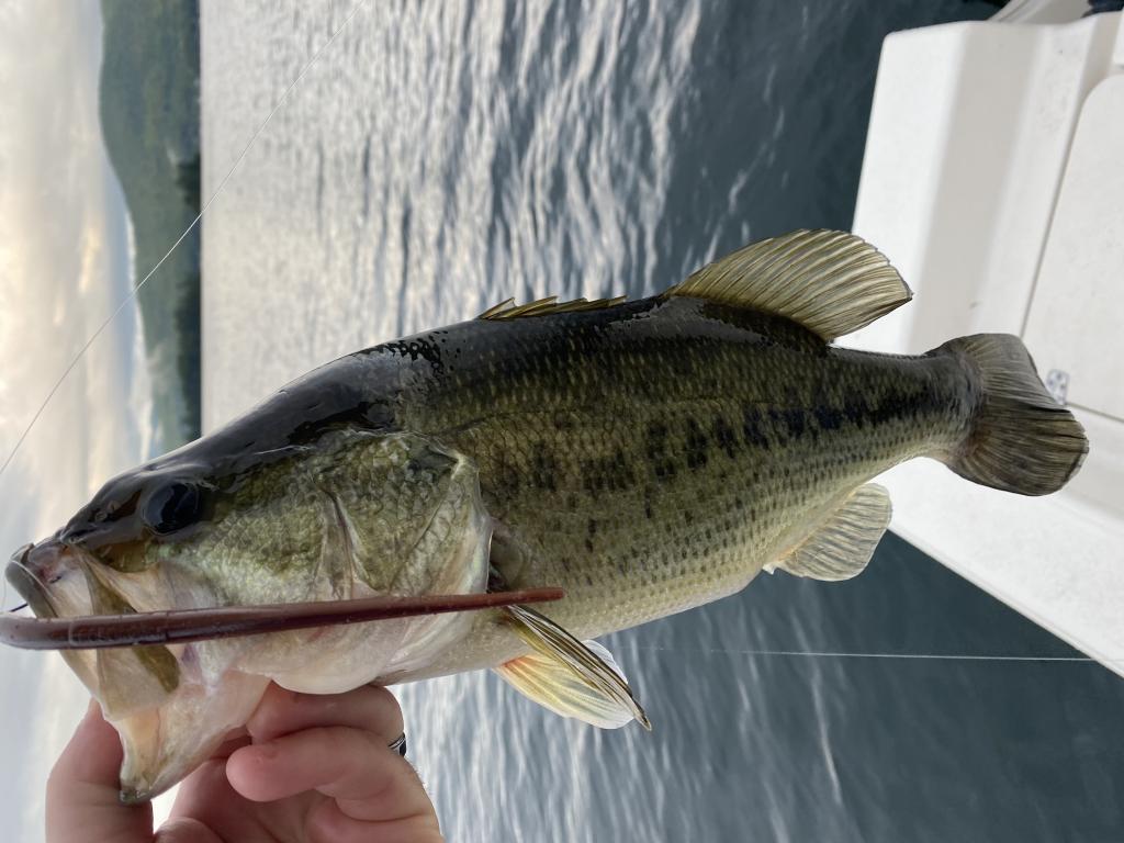 Hi everyone went to Lake George for our 3rd annual family vacation (7-30..8/6)and had our house on the water with boat slip so naturally I had rented a boat from Chic’s ( 21 foot Carolina skiff.) wanted lake trout and tried but since I didn’t have a depth finder on a rented boat it literally was blind jigging..since I only had a couple hours a day since I still had to do the family thing I concentrated on bass…. Oh man were they hungry … all caught on drop shot with natural color Robo worms… large mouths were in 20-30 feet of water and the smallies were in 30-45 ft of water … it seemed that once the rock piles hit some sort of green grass it was lights out… phenomenally good fishing… some drops I didn’t even close the bail on the cast yet and had a bass sitting on the worm.. so much fun!!