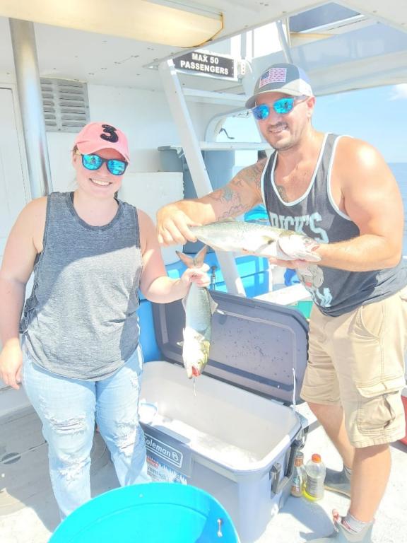Fishing was a pick today with the BLUEFISH and the MACKEREL. Because of all the flooding and runoff that we had, the water was a very very ugly brown. There were a lot of fish - we could read them and saw them break water sometimes but they just weren't that excited about eating. We did have some limits but it was tough to get them to bite.