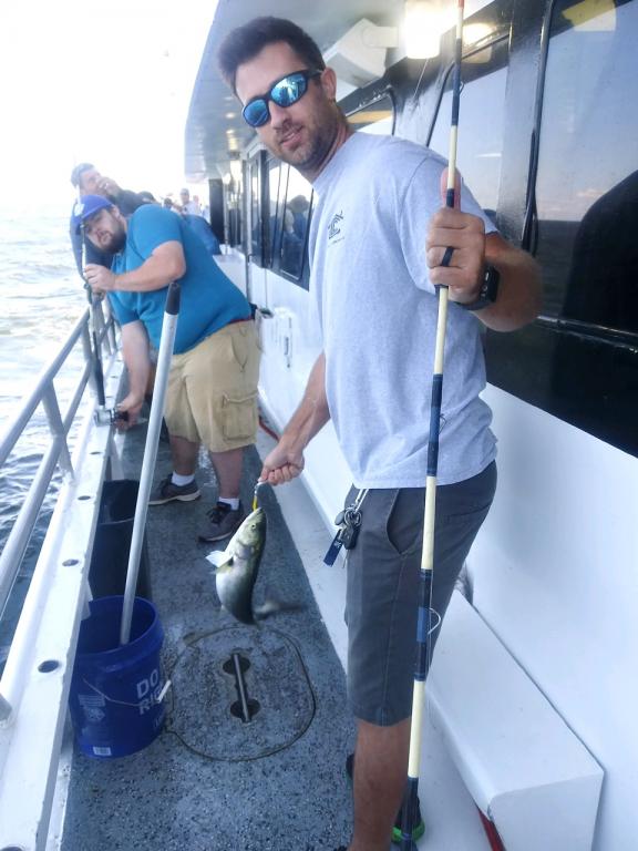 Come on out with us tomorrow! The Royal Miss Belmar will be sailing 1/2 Day for Fluke, Seabass, and Ling. The Miss Belmar Princess will be sailing 3/4 Day for Blues and Stripers. The Miss Belmar Princess is sailing daily for stripers and blues from 7:30 a.m. - 2:30 p.m. and every night for fluke and sea bass from 4:30 p.m. - 8:30 p.m. The Royal Miss Belmar is sailing daily for fluke and sea bass from 7:30 a.m. - 12:00 p.m. and has whale watching trips daily from 1:30 p.m. - 4:30 p.m. and sunset cruises every Friday and Saturday night from 7:00 p.m. to sunset. We also have a Concert Cruise with LIVE bands on our boat! Check out our website missbelmar.com for our complete line up. Or you can give us a call at (732) 681-6866. You can make a reservation on our website missbelmar.com, or you can give us a call at (732) 681-6866 and we would be more than happy to make one for you! The Miss Belmar Princess is the largest, fastest and cleanest fishing boat in Belmar. With Miss Belmar's 3 engines and a total of 2,100 horsepower, she is the first boat to the fishing grounds every day and we guarantee it. No other boat comes close. Try us and you'll see why.