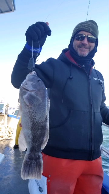 Hey gang it felt great to be out on the blackfish ground for opening day. We had 18 regulars plus Captain George came out to fish with us. We did not have any limits, but we caught around 25 keepers on the boat with several guys boating 3 and plenty of action with the shorts. We made 3 drops on the anchors today. Pretty windy but it was a good wind out of the west. Kenny the assassin fishing the starboard bow won today's pool with a nice tog. Marco and Joey worked great today on deck. It was a fun day fishing with them and the regulars today. I'm looking forward to getting back out there tomorrow. See you guys in the morning. Here's a few pics. Thanks Capt. Scott