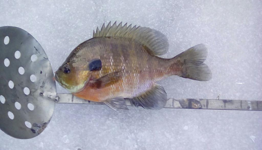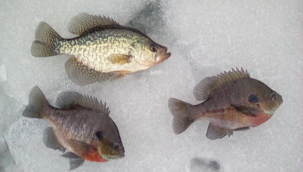 I went to a late season spot in the north western part of nj this weekend and found 6" 0f ice with a half inch of snow/sleet on top. the fish were a bit finicky but still were willing to play some. I fished in 6' to 8' of water with my #1 jig and got some decent fish for my efforts. i do not know how much longer i will find safe ice to play on so this might have been my last trip for the 2022 season. way to early for me to be saying that oh well not a bad season with 31 days fished and decent fish as well. Now it is time to get those jig-n-bobbers ready for the search for"EL CRAPO" maybe this is the year i get him he has eluded me so far, it is not easy to get a 16" 2lb plus crappie. I have included pis from today it was a nice day to be out on the hardwater.