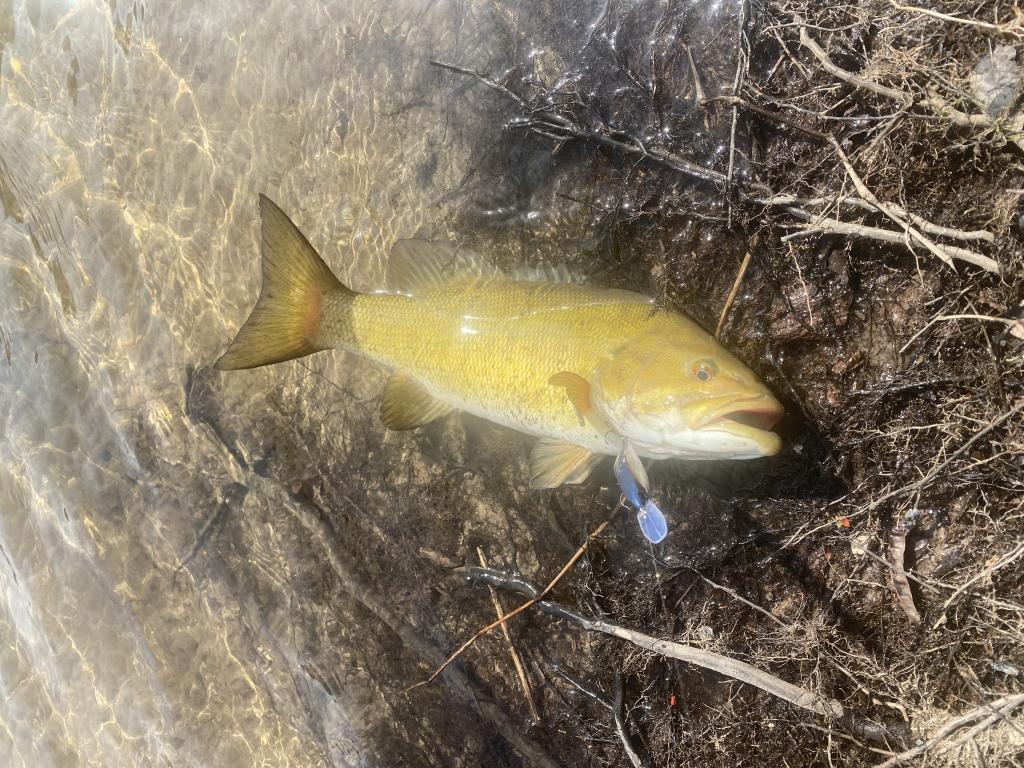 So my first fish of 2022 must of missed the lure and got snagged on the gill but im counting it lol and it was a super yellow smallmouth