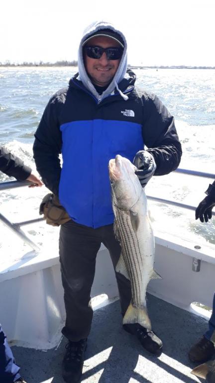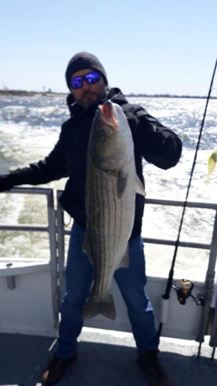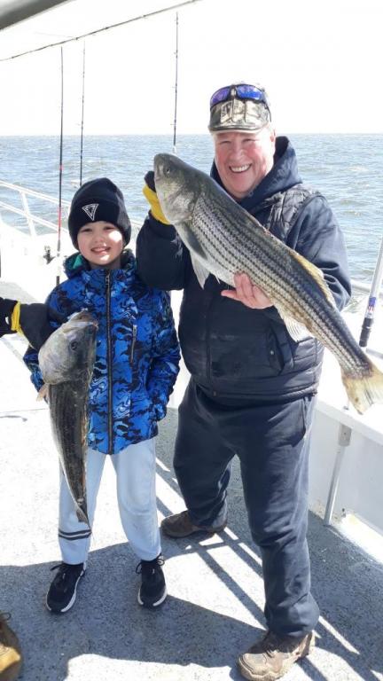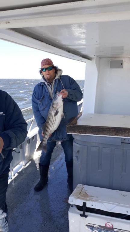 🎣🎣EXCELLENT FISHING!! As soon as we stopped the boat this morning we had multiple fish hooked up! We had 2 SOLID HOURS of CATCHING today! High hook had 6 today (only keeping their limit)! Miss Belmar is LIMITED OUT and back at the dock early and EVERYONE aboard got a fish! The last few drifts we had to throw the STRIPERS back because we had our limits around the boat! BEST DAY OF THE SEASON SO FAR!🎣🎣