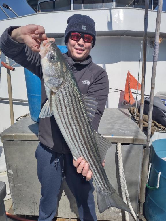 Bass are Biting! Good Fishing Today Sailing 7AM Sunday & Monday - Space Available Stripers were biting today. Stripers were caught on shad, mojo's, and flutter spoons It looks good for tomorrow. The weather report is excellent and we have a lot of space available. www.bigjamaica.com. For further information call 732-528-5014