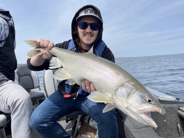 Beginning of May I headed up to NY to join Nick on various mugging expeditions, first day I got my first cisco, or lake whitefish, whichever species this is. Caught 2 more and they were pretty cool nonetheless. good fighters for the size!? Nick proceeded to mop the boat with slob pickerels and some chunky SMBs.