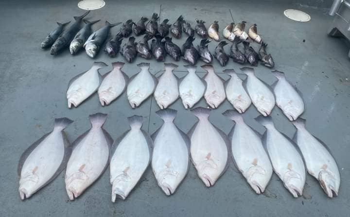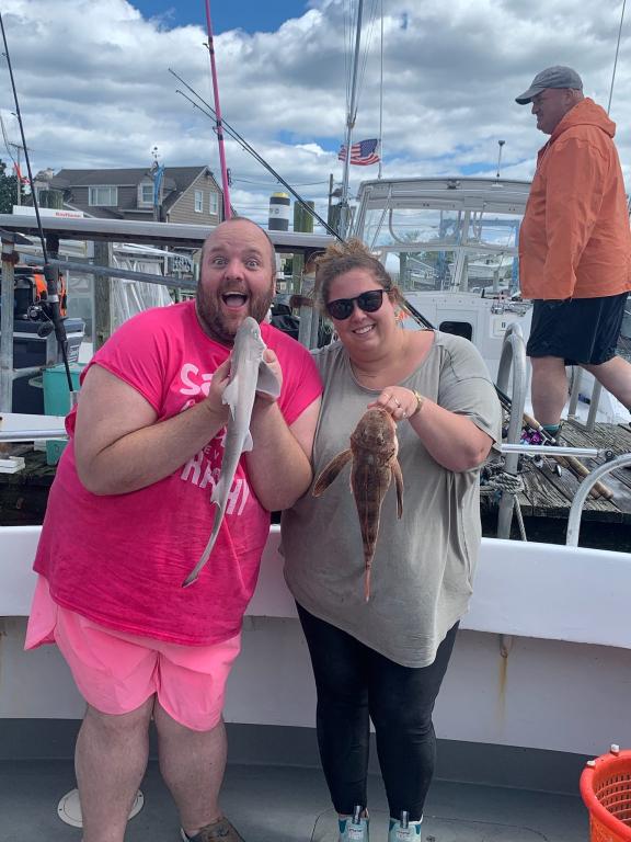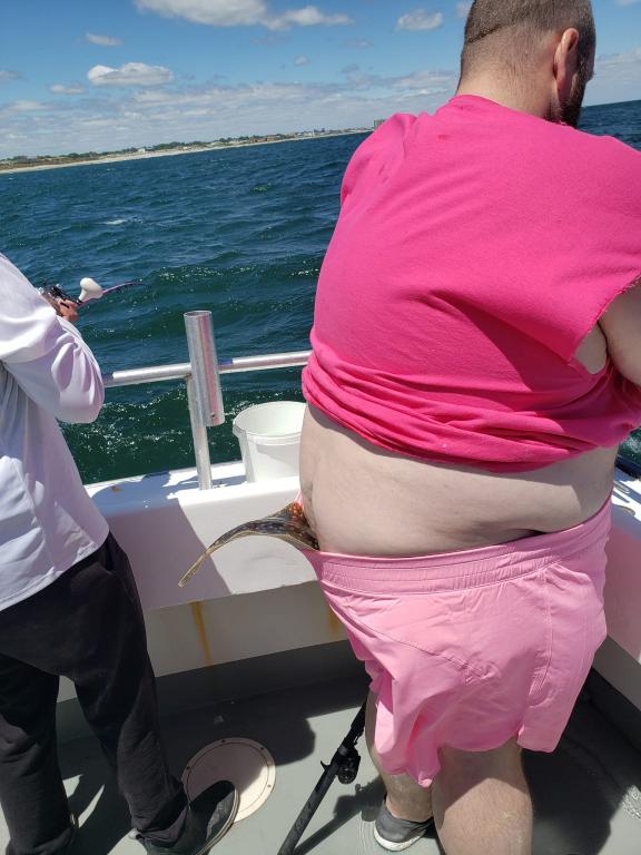 Well like the old saying "if life gives ya AIDs ,make Lemonaids " thats what we did. The rowdy crew headed out in the gusty NW winds. Headed to where Capt. Jerry had the fluke great on Friday & area was dead, went looking for blues & they weren't schooled up we only picked a few. Wind came on crazy strong so jer dropped pick on some bottom & we had drop n reel sea bass but all 11.5-12.9999 models. New #regs really screwing us. Bunch of roaster tog went back to live as well & a few mountain trout hit the ice. Went into the beach for flukes & worked our way around until we finally got into bites. Loads of shorts were inhaling the baits & the action was great. Ended up with 17k total not the usual monger nation slaughter but well earned given the conditions. Directa dbag got his limit even though he did not bring any of his own Gulp or bucktails/jigheads so he owes me & orr. Someone put a fluke in my pants & the weather was excellent drinking conditions at sea as I ran out of beer. Dev also got her PB Bird! 12 days until LINGOMANIA 2022!