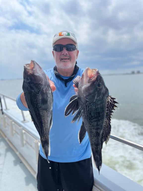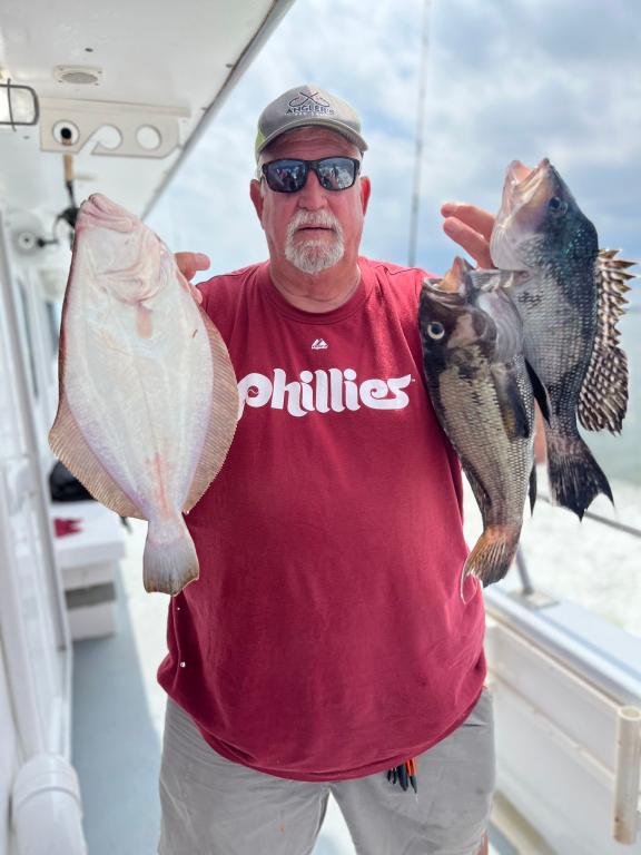 There were plenty of readings today along the bottom and up mid-water but the BLUEFISH did not want to cooperate. We had a few BLUES up to 6 lbs. on a couple of drifts. We picked away at the SEA BASS and FLUKE with an occasional BLUEFISH mixed in.