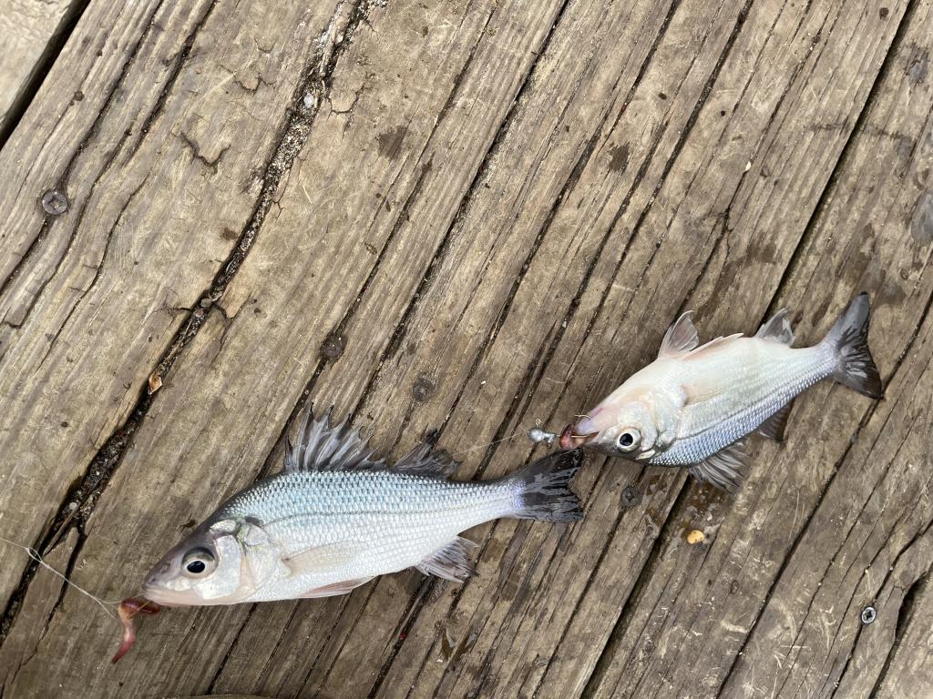 Went ultralight jigging earlier than usual today at midday in a 40 degree Central Jersey lake before a sou’wester gale rain storm. Air temp was only 37 degrees. Three pickup trucks were in the parking lot when I arrived. Three unemployed landscapers were ultralight jigging. They caught and kept a stringer of perch and crappies as they do every day. I caught and released 22 white perch including two doubles with Walmart red worm 🪱 halves on two gold hooks and a 1/32 oz unpainted leadhead jig on 4 lb test line. I was the last fisherman to leave after the cold rain arrived. Only fished for an hour. Best fishing is before the storm. I’ll probably catch nothing tomorrow. Fishing on a falling barometer after a cold front in muddy, flood waters with current is usually not good. The NJ Park Police were in the parking lot when I left. I am fortunate that they didn’t accost me. Caught and released 641 fish in 20 trips this year in the same spot with 3 containers of worms 🪱.