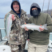 Yesterdays trip had perfect conditions it was just a matter of time before we found em. Threw some flats out and picked up some nice bows on stickbaits. Worked the big pond started picking away at the lakers throwing some in the box and then we had a hard time keeping them on the hook.