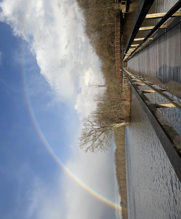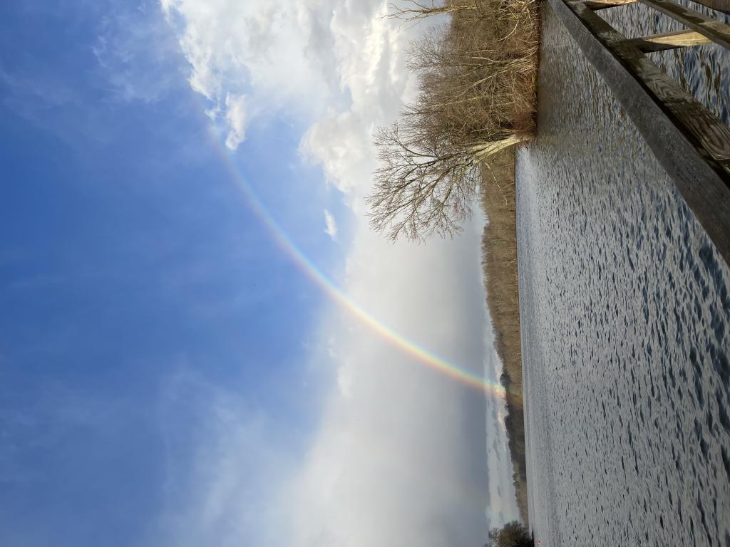 Went fishing in 48 degree Carnegie Lake yesterday afternoon on a warm, sunny day with a strong south wind. Saw a boat put two buoys in the lake. Caught and released a black crappie, bluegill and yellow perch. Went to a doctor appointment, then returned to the lake after a severe storm and tornado 🌪️ struck nearby. Took pics of a rainbow. Too much vegetation was floating on the lake from the storm runoff. I caught and released 3 white perch, a black crappie and a bluegill. Caught 999 fish 🐟 in one spot this year.