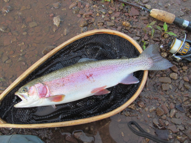Fished up around Duke Island Park for trout, did ok. The water just fell below 1000 CFS at Manville so wading was "interesting" to say the least. By 11 am the tree "schmutz" was so bad I threw in the towel. Got one up on the "shale flats" in honor of Craig's dad Mr. Norris.