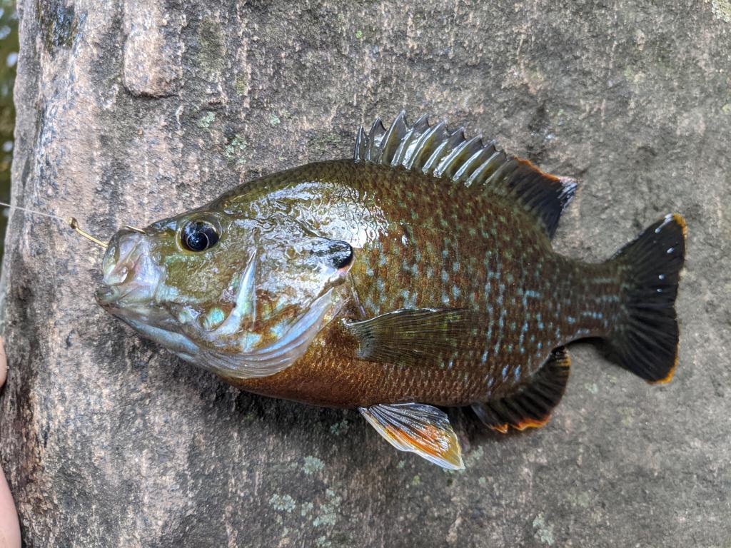 I have caught a pumpkinseed x green before and that looks different. let me see if I can dig up that photo