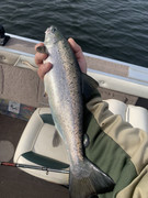Managed to get out this weekend after putting some time in the woods. Splashed the boat in and got to work. Pretty quickly dialed in on the salmon right away tweaked a few spoons picked up a nice rainbow along the way. Lost count at 15 salmon lost a few good ones next to the boat. Always plenty of action going on all year long here at Mike K Guide Service if you don’t mind the cold. Fishing all year long! Trout/salmon/lakers/walleye/musky trips all being offered at this time.