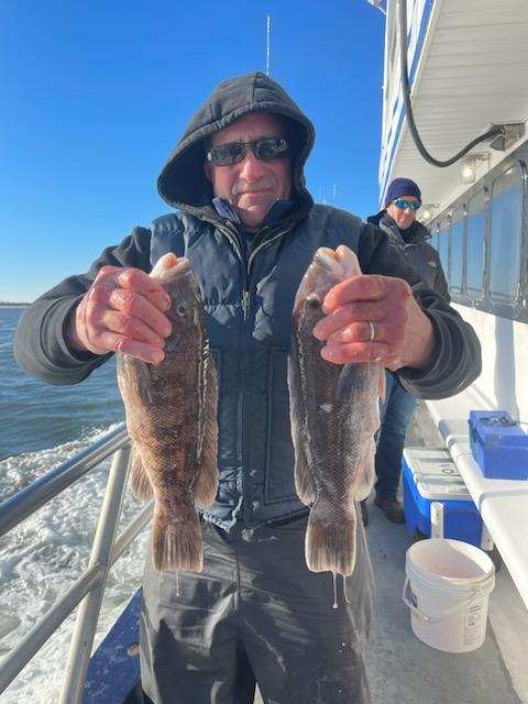 Hey gang, we're out on a pretty nice day, banging away at keeper blackfish and shorts. We didn't make it out the last couple of days (Sun. and Mon.) but we are out today with 15 good guys. Tomorrow we have guys coming as it's supposed to be one of the nicest days of the week. So we will be sailing tomorrow 100%. The forecast though is calling for a lot of wind on Thurs. and Fri. so we'll have to wait and see about those two days. We've been catching all of our fish on green crabs. Joey had a bushel of white leggers last week, but actually they didn't make a difference. The bite has been on the greens as I said. Fishing the whole month of January weather permitting. 7:30 a.m. to 2:30 / 3:00 p.m. Fare is $90. Heated handrails and heated cabin for your comfort. Thanks. I'll post pics later.