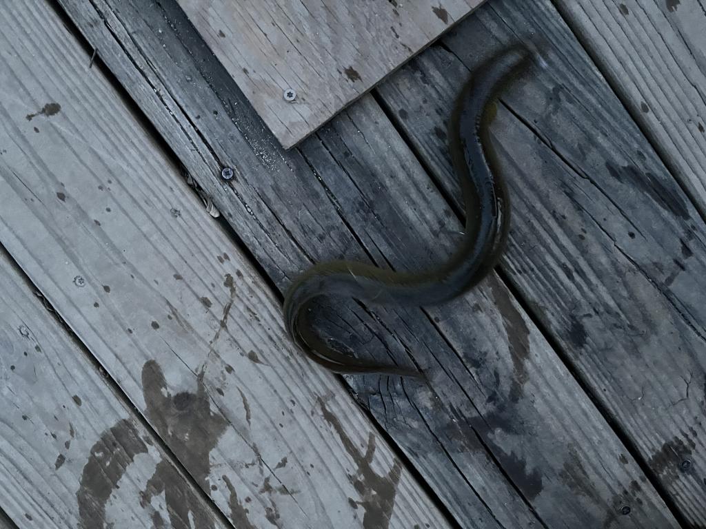 Went fishing 🎣 in 58 degree Carnegie Lake this evening on a warm, sunny day with a light south wind. More than 25 fishermen were there. There was a late bite. Caught 4 black crappies to 10.5”, 2 bluegills to 8”, a white crappie and an eel. Cormorants were catching gizzard shad. Osprey were fishing.