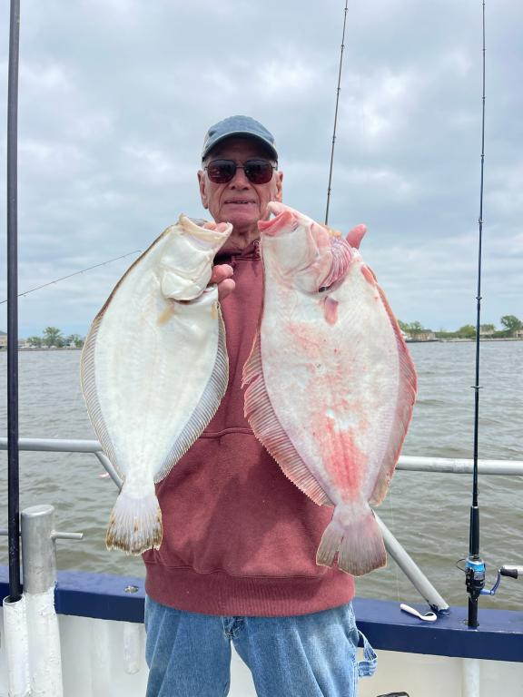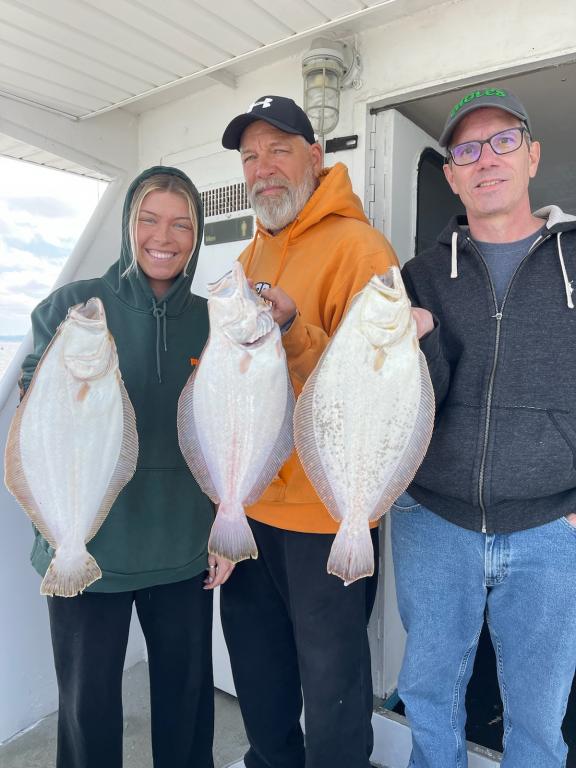 Hey gang, we are out on the fluke grounds again. We have a lot of good fishermen again on the boat. Similar to last week. Tom caught the biggest fluke of the season so far at 7.2 lbs. Ben got his limit early at 10:00 a.m. We have one other limit so far. Big Joe and Big Al have 2 nice keepers each. We are up to 18 or 19 keepers so far at 11:30. Not counting the short action. Ben was high hook on keeper fluke with 5 (ORL). Ended today with 26 keepers. Come tomorrow, we'll definitely be fishing tomorrow (Tues.) Unfortunately, Wed. looks like a washout. Otherwise fishing every day 7:30 a.m. to 2:30 p.m.; fare is $90. See you at the dock. Thanks, Capt. Scott