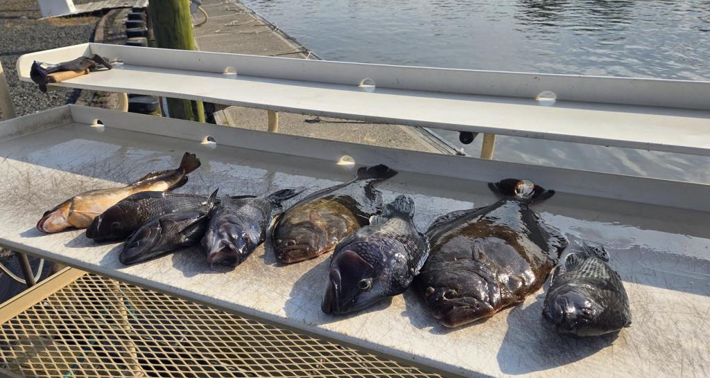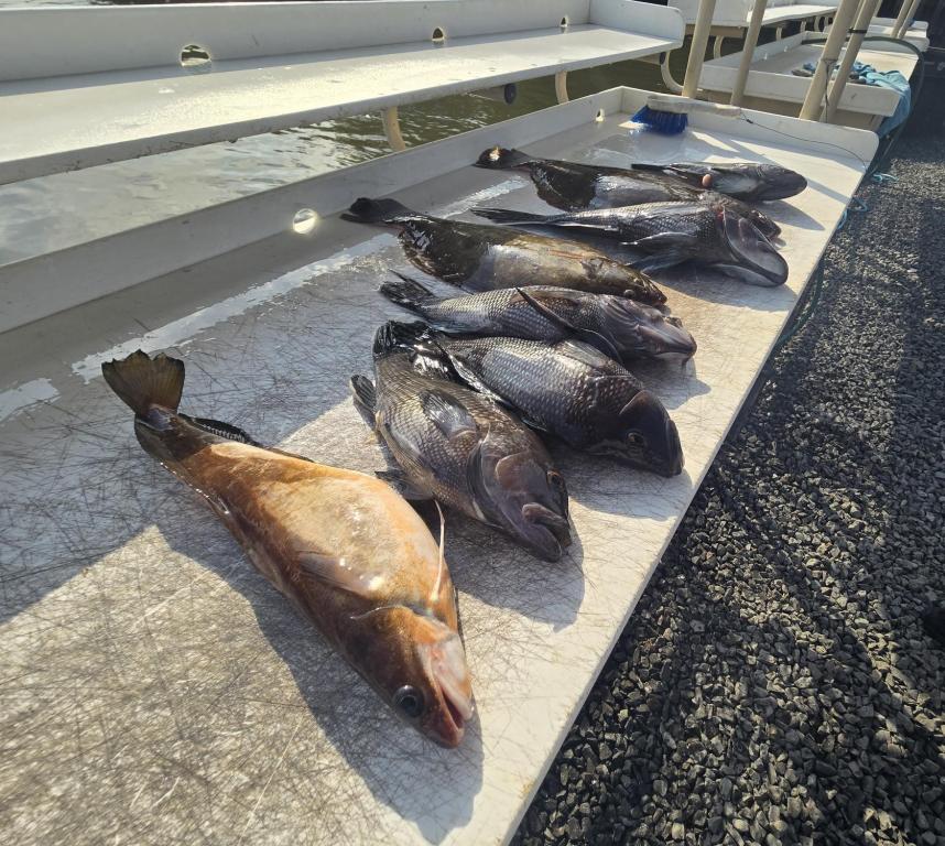Left the barn to calm seas. It was a perfect day to go fishing even saw whales and dolphins on the way out. Fished a few #'s on rough bottom and had a good pick all day of sea bass, fluke and ling. 6" gulp on a chicken rig did the trick! None of the bizkits we kept where under 13".