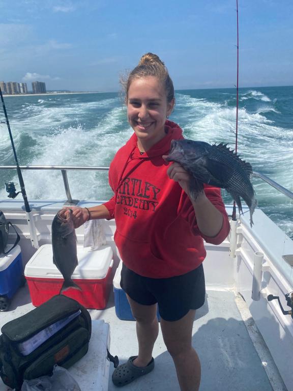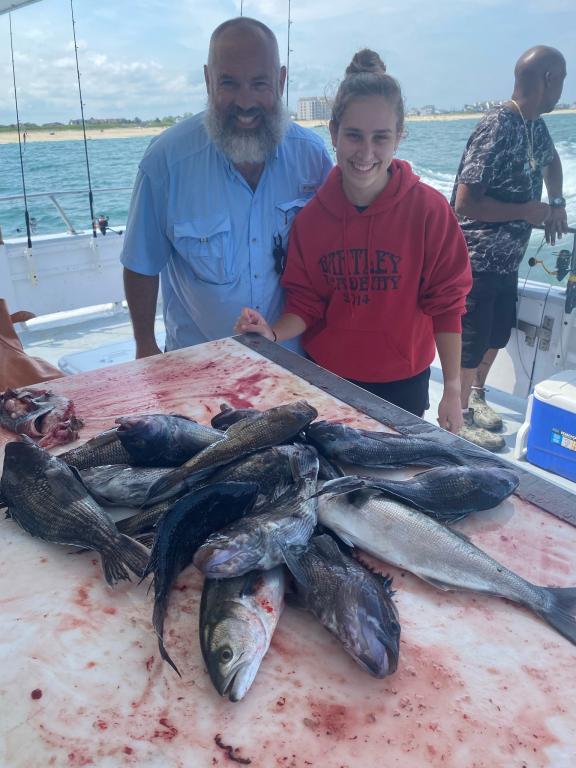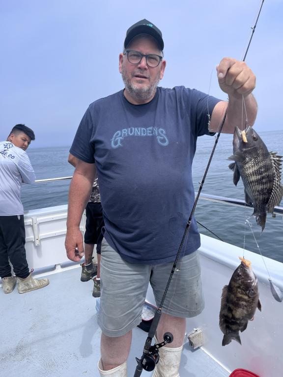 We did not see the BLUES in the morning. We picked at the SEA BASS most of the day with an occasional shot at NICE KEEPER SEA BASS. The shorts out numbered the keepers.
