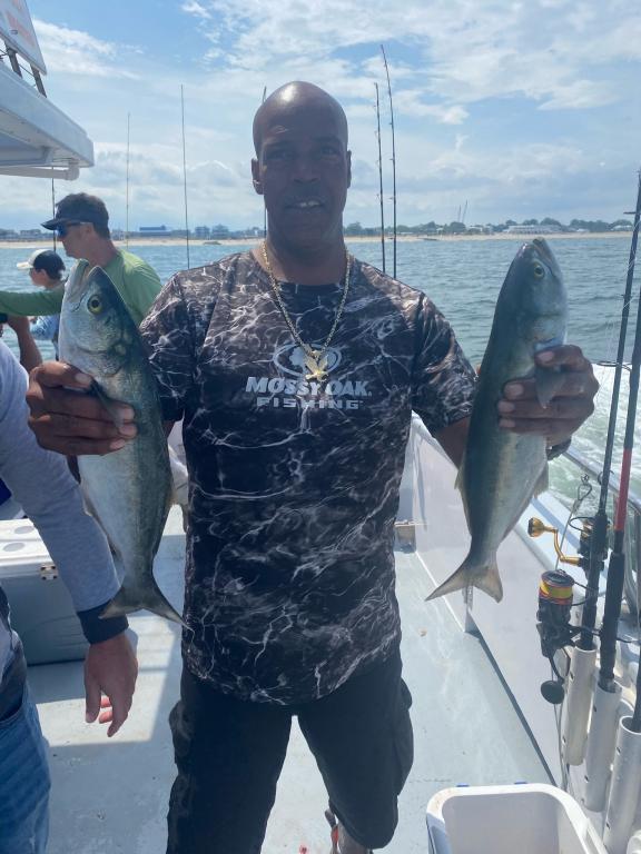 At the end of the day, we found the BLUES and they were on top working on bait. Plain diamond jigs worked best on the 2 to 4 lb. BLUEFISH.