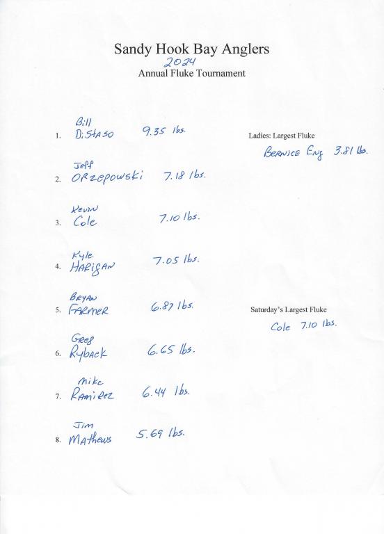 SHBA Fluke Tournament 2024 Final standings - NJFishing.com Your Best Online Source for Fishing Information in New Jersey