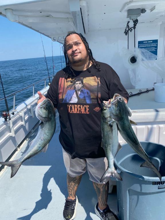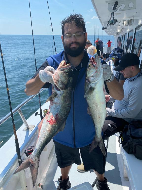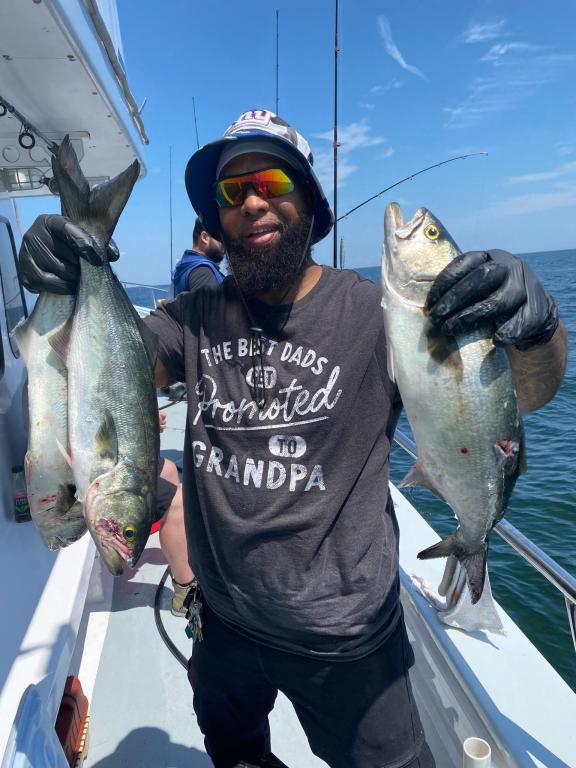 There were plenty of limits onboard with all anglers going home with fish. We also had some nice JUMBO SEA BASS jigged at times. It was a GREAT day of BLUEFISHING! The BLUES are here and the weather looks really nice for tomorrow so NOW is the time to come on down. See you in the morning. The GOLDEN EAGLE sails every day for STRIPERS & BLUES at 7:30 am from Belmar Marina in Belmar, NJ. For more information visit us at www.goldeneaglefishing.com or call 732-681-6144. See you onboard. |
