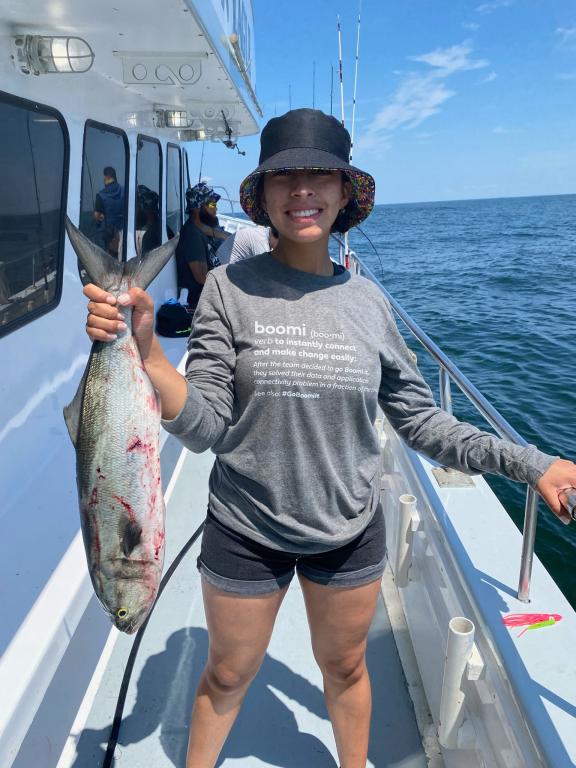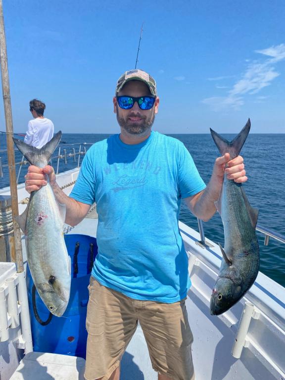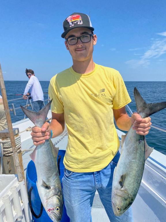 IT WAS EXCELLENT ACTION TODAY WITH BLUES UP TO 9 POUNDS BEING GAFFED! They were all on jigs.