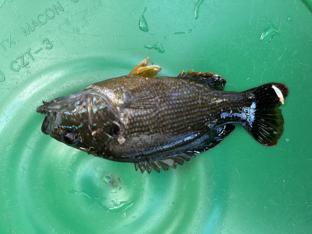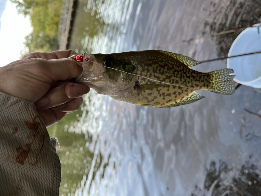 Went fishing 🎣 in 74 degrees Carnegie Lake this evening on a warm, sunny day during a nor’easter. Didn’t fish 🎣 in the Millstone River because there was too many weeds there. Saw a dead snake 🐍 on the Delaware and Raritan Canal towpath. Found 3 lures on the Aqueduct. Threw out corn 🌽 for chum, then caught nothing with canned whole kernel corn 🌽 bait. Caught and released a largemouth bass, yellow perch, green sunfish, and 10” black crappie. Lost a jig on a downed tree in the lake then a pickerel bit off a second jig. I stopped jigging after that. Mosquitoes 🦟 were biting. I killed 2. Saw 4 other fishermen catch nothing. Met Leon from Guyana 🇬🇾 and a carper from England 🏴󠁧󠁢󠁥󠁮󠁧󠁿. I reported the green sunfish to the Nonindigenous Aquatic Species Program at nas.er.usgs.gov.
