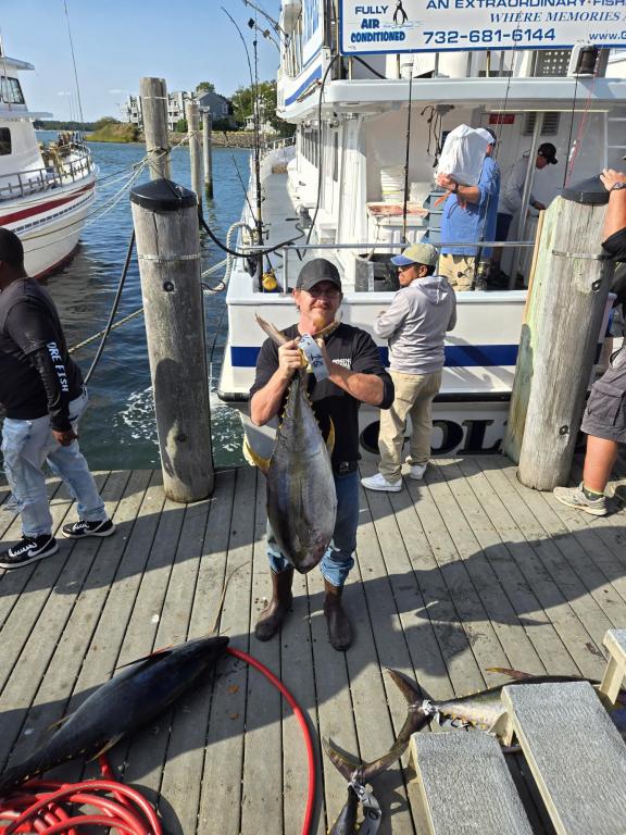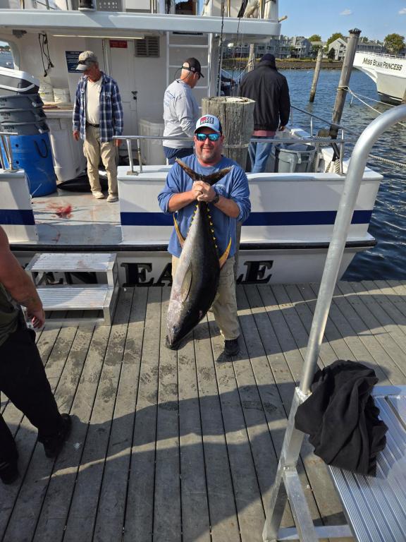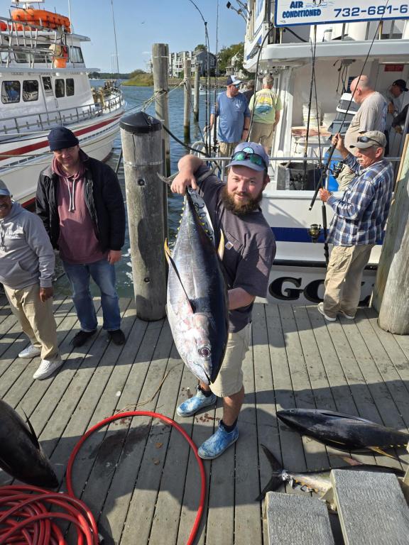 We had a couple SWORDFISH, a few MAHI, one LONGFIN and all the rest were YELLOWFIN TUNA. There were plenty of fish and many people had their limit. The fish ranged from 35/40 lbs. to 100 lbs. The pots were loaded with MAHI which is great for our 18-20 HOUR CANYON MAHI TRIP that departs next Sunday, Sept. 15th, at 11:30pm. We have lots of spots open and with all the fish out there, NOW would be the time to make your reservations to join us. The weather for the rest of the week looks really nice and BLUEFISHING IS HOT! There are lots of fish around and when we were out on Sunday, it was fantastic action and we had a boat limit of BLUES. Come on down for an exciting day of fishing on the Golden Eagle. The GOLDEN EAGLE sails every day for STRIPERS & BLUES at 7:30 am from Belmar Marina in Belmar, NJ. For more information visit us at www.goldeneaglefishing.com or call 732-681-6144. See you onboard. |