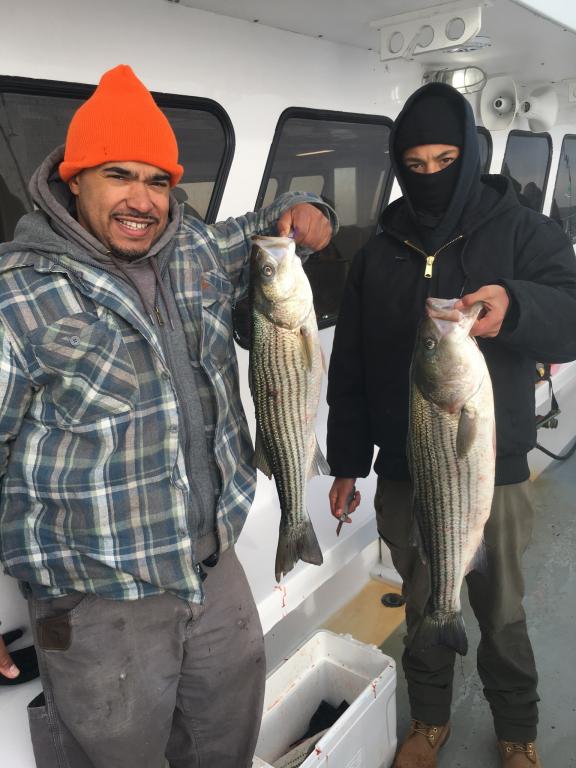 STRIPER fishing was awesome today! The action was HOT and we were in catch and release mode after about 1-1/2 hours. We had a complete limit of KEEPERS and BONUS FISH along with a few shorts. All OVERS were safely released.