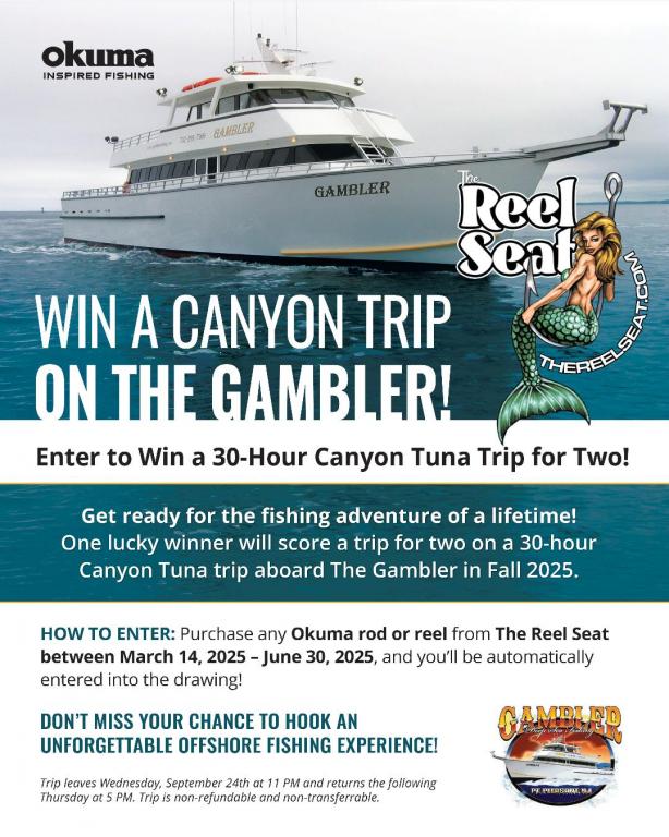 Captain Bob Bogan Brand New 90 Foot Party Boat Gambler Sailing Daily From Point Pleasant Beach, NJ http://www.gamblerfishing.net captbogan@aol.com 732-295-7569 Last edited by captbogan; 03-17-2025 at 02:25 PM.. |